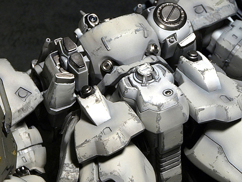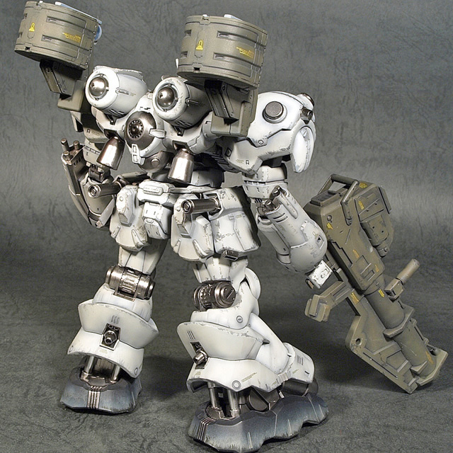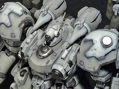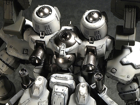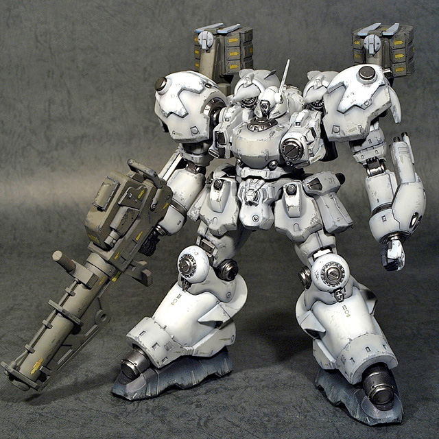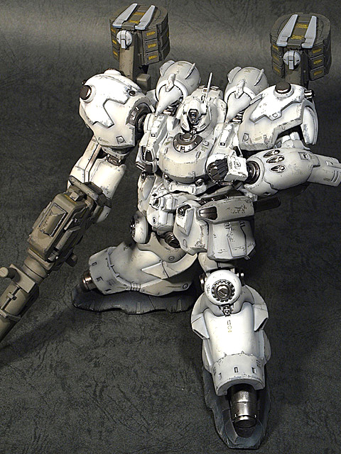 これまでのキットに比べて定価が600円高くなっていますが、それに見合ったボリュームのキットです。一般にこうした所謂『重量型』のメカは巨大になりがちですが、『ARMORED CORE』世界の『重量型』の、「大きい」ではなく「太い」といった特徴が良く表現されています。デザインの関係上、各部の可動範囲は狭いのが残念ですが、それでも十分にポーズ付けして遊べるとは思いますし、無理に複雑な引き出し関節を設けてそこだけ「トイとしての機構」を丸出しにするよりはマシだと思います。