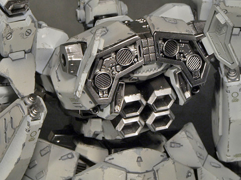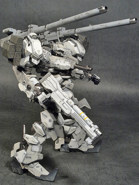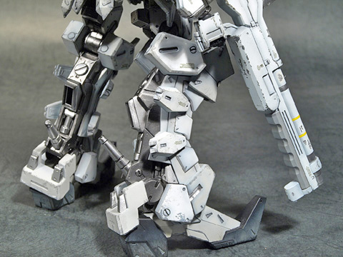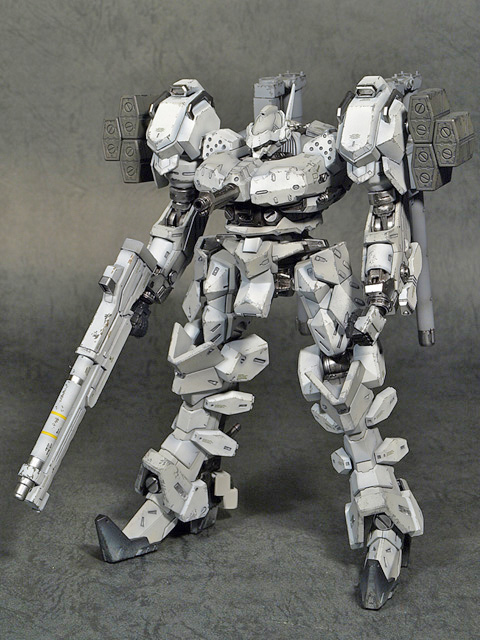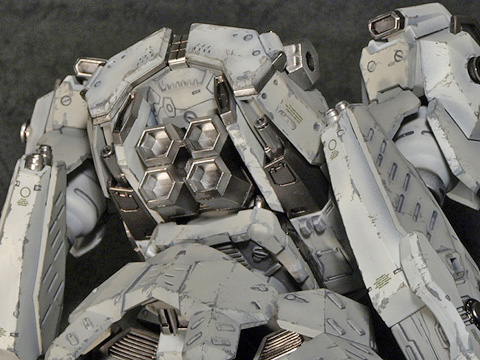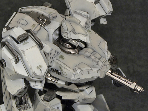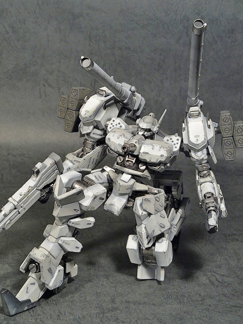 A.C.V.I.シリーズの『クレスト CR-C90U3 デュアルフェイスVer.』と『クレスト CR-C75U2 白兵戦Ver.』を組み合わせたものです。この2セットのキットでそれぞれ新規に追加されたパーツで構成しました。独自設定のレイヴンズ・フラック(ACチーム)『シェヴロンズ』の仕様で作成しました。