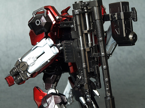 『YH12-MAYFLY』の上側の透明パーツ部分を埋めて、初代ACに登場し、『ナインボール』が装備していた『HD-X1487』を思わせる形状に変更してみました。『HD-X1487』は自分がデザイン画を描いた事もあり、思い入れがあるので、こちらに似せたものを装備させてみたかったのです。