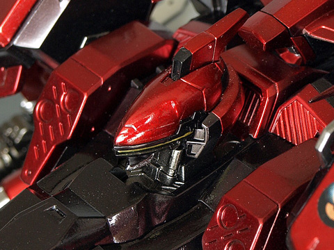 脚パーツ『CR-A71S2』の2本線の塗り分けが無く、フトモモの部分の塗り分けも異なるのは、これも単に、ACVIが非常に細かくパーツ分割されているので、それを生かして塗り分け部分を変更してみただけです。腕も含めて、基本的に「本体」となる部分を黒、それ以外の部分を「赤」としています。