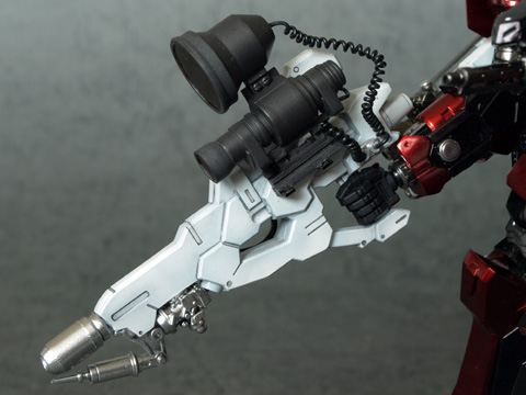 背部の折畳砲も同じくクレスト社製のCR-WB78GLに近いが、砲身がまったく異なり、その他にも差異が多い事から、単純に機関部の一部を流用しただけの別物と解釈されている。これもまた同社からはアナウンスが一切なされていないが、非公式筋の情報として、リニア・ライフル砲である事だけがリークされている。呼称からするに、弾体を加速させると共に、強烈な回転を与えるシステムではないかと推定されているが、これもまた詳細は解っていない。