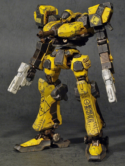 ACPPと云う作品は、殆ど全ての文字設定やストーリー、登場するメカの設定画の多くを担当したのもあって、自分が関わったゲーム作品の中でも代表作に挙げたいくらいに思い入れが強いものでした(これ程にゲーム全般のあらゆる部分に関わった作品はずっと後年になるまでありませんでした)。中でも『地雷伍長』の設定は、そのエンブレムも相まって強く記憶に残るものになっていて、是非ともACVIとして立体にしてみたい機体だったのですが、これにて念願が叶いました。