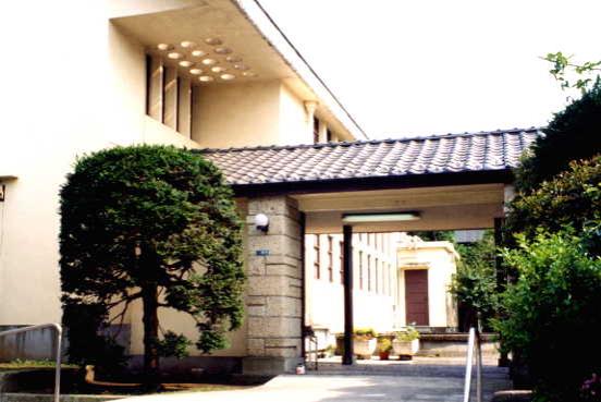 玄関兼渡り廊下。左側が礼拝堂、右が附属幼稚園。