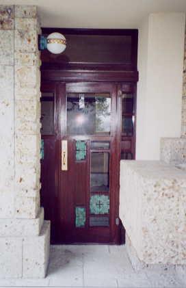 玄関に到着です。 しかしこの扉の先、 建物内部の写真撮影は禁止されています。 ご紹介できなくて残念です。 |