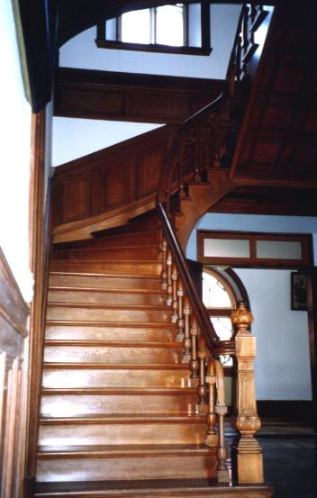 玄関ホールから昇る階段は左右対称のつくり |