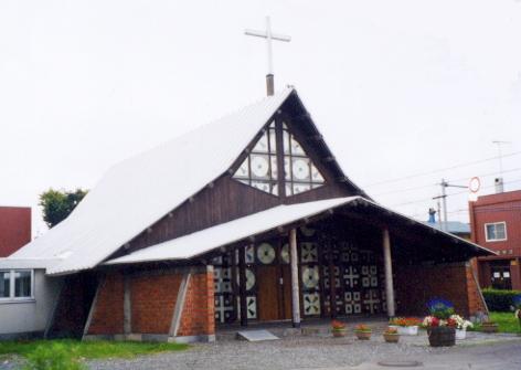 軽井沢の聖パウロや東京芝の聖アルバンと同様、柱や梁に丸太を使用した、自然の風合を生かした教会建築で、