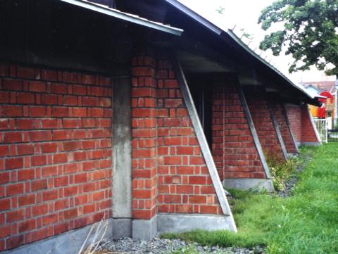 耐雪のために梁が太く、煉瓦造のバットレスによる念入りな補強がなされていますが、