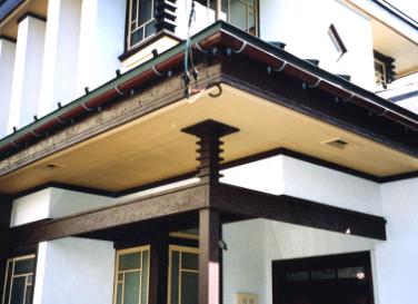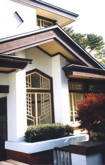 意匠的にはライト風と言えますが、大地と並行にスマートに伸びていく草原住宅ではなく、