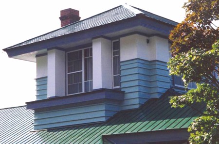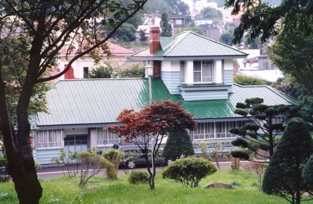 また逆に、この草や木々があって、屋根の緑と下見板の水色が、さらに美しく映えることができるのです。