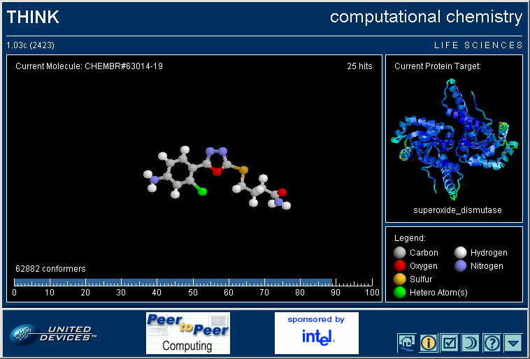 現在の我らが敵。かなり手ごわそうである。![]() ![]() 解析中の画面。かっこよくグラフィックが動いて解析されればやるき倍増なんだけども。 5/8、新ボス登場!→VEGF protein。前回のsuperoxide_dismutaseに比べると何とも恐ろしい風貌をしております。気持ち悪すぎなので早いところ殺っちまいましょう! 新ボスになってから、一回の解析が早く終了するような気がします。celeron800MHzで1つ5時間で終わってしまった。%がバリバリ進むのでたまーに立ち上げてたって人には解析しやすくなったかもしれません。Inactiveの方、是非もう一度(w 「私たちは今新しい分子でネットワークに新しい癌プロジェクト作品ユニットを注入しています。これらの新しい作品ユニット(WU)は新しいフォーマットです。今、100ではなくWUにつき200の分子があります。これらのWUは、古いWUより実行する、より少ない時間をとります。心配しない、これは、それが単に低下させる研究結果の有効性を変更しません、WUを完成するためにそれがとる時。これは非常に長い分子(Long Molecules)と格闘するために終わりました。さらに、別のResdata(VEGF蛋白質)は同様に活性化されました。」 ここをExciteで翻訳 |