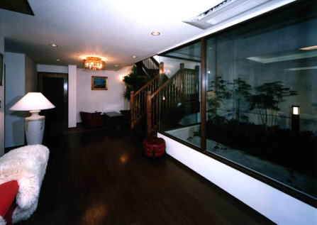 個人個人の生活を重視しつつ家族のコミュニケーション空間としての2〜3階の吹き抜けLDKと、地域とのコミュニケーションが可能な地下パーティールームと分けて計画しながらも、地階と吹き抜けの二つの階を、屋上を含めた外部吹き抜け空間でつなぐことによって両床の融合を計画した。 |