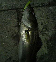 ミッドナイトは「エンジン」見た後の22時。セイゴの様子を見たくてパラマックス2インチ。ロッドはツネスペより大型に備えてエアリアル。これなら40アップでも楽に抜き上げできるはず。ところが本流筋は北風が冷たい。沖もヘチもアタリ無し。ボイルもない。しかも素人さんが3組もいやがる。 素人さんには釣れるはずも無い。当然俺も釣れない(苦笑) 運河に逃げ込む。予想通り風も少なくて穏やか。少ないけど反応がある。やっぱり今夜はここだった。一度アタるとほとんど追い食いする。ところがここはサイズが小さすぎて水面でバレバレ。ようやく獲れたのは30アップ゚の一本。でも体側に傷があるし、あんまり引かない。こいつもケータイで写真撮ってからリリース。