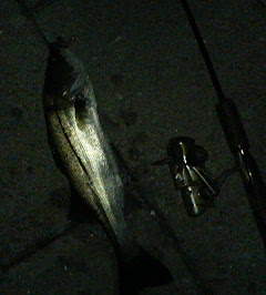 途中で水面に引き波が見えた。それが俺の足元まで来たとき「バホッ!」って水柱があがった。おーおーホントに食ってやがる。それ見てちょっとドキドキした。