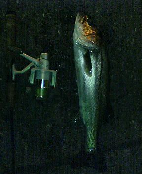 運河の河口に向かって投げて引いてきたらアタリがあった。しかも2回ただし明らかにお子ちゃまの『コンッ!コンッ!』ってヤツじゃない。フッコサイズのアタリだ。 ・・・・・・・と思った次の瞬間に追い食いした。