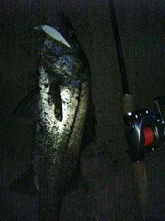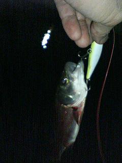 今度は少々デカい?というか元気だ。グングン潜る。とにかく潜る。そのうち沖に(といっても川幅8メートルぐらい)逃げる。でもって浮かせてみたら跳ぶ。暴れまくるからバシャバシャと。マンションの住人が起きちゃいそうだ(笑)
