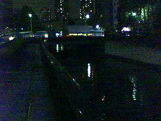 まずはホテル駐車場の裏側。 見た目に水は悪くない。けっこう透明度は高い。 (たぶん)ビーフリーズを橋脚に沿ってキャスト。でもって橋ゲタの暗がりから岸沿いに引いてくる。