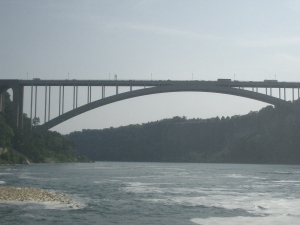 アメリカ・ニューヨーク州側とカナダ・オンタリオ州側とを繋ぐ橋を霧の乙女号から。