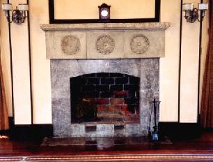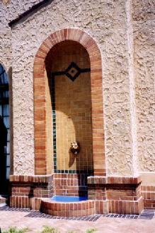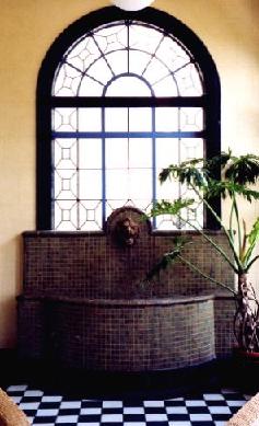 テラスに設けられた獅子頭の噴水 |