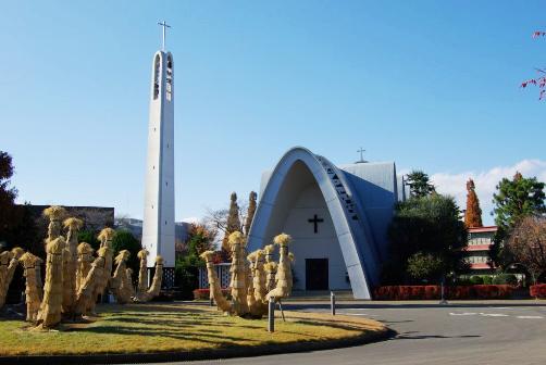 高さ31メートルの鐘楼(ベルタワー)もレーモンドの設計。5年遅れて完成。 |