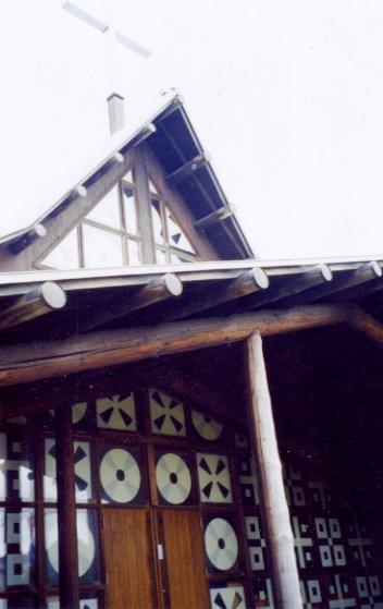 軽井沢の聖パウロや東京芝の聖アルバンと同様、柱や梁に丸太を使用した、自然の風合を生かした教会建築で、