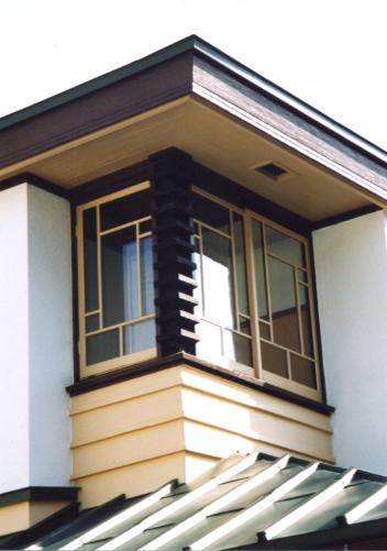 意匠的にはライト風と言えますが、大地と並行にスマートに伸びていく草原住宅ではなく、