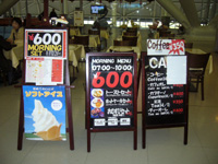 | トーストセットやホットケーキセットおにぎりセットがオール600円。 |