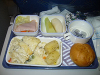 朝ご飯は、魚かビーフで、お魚食べました。アルミに包んだマヨネーズ焼きって感じで、これもおいしかったです。……と、私は思いました。機内食なんだし、そんな、激うまなものが出てくるはずないんだしね!