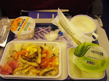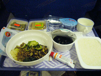 行きは魚だったから、帰りも同じ選択肢なら、ビーフ食べてみようっっと、などと思っていたのですが、そんなありきたりの選択肢じゃございませんでしたよ、コリアンエア。