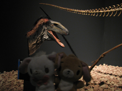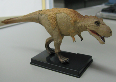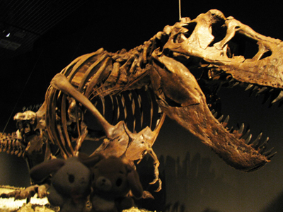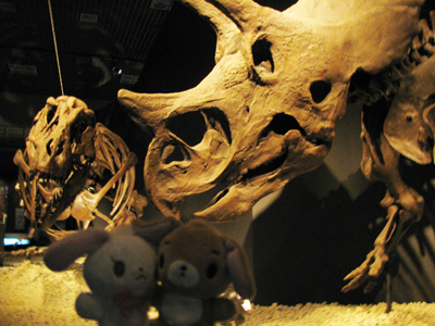 | 翌日は、友達と友達のお子さんたちと一緒に恐竜博へ行きました。 マニアックかな? と思ったけど、誘ったら「いいですよ」と言ってもらったので、お言葉に甘えました。 ちなみに昨日壊れた靴はアロンアルファではもたなかったので、今度はホテルの近くのコンビニで、セメダイン系の超強力接着剤を購入。粘度が高いせいか、ちゃんと大阪までもちました。あー良かった。 さて恐竜博。T-REX! トリケラトプス! 萌え〜〜〜! 最新の研究で、ティラノの背中には羽毛があったんじゃね? という仮説が浮かび上がってきたそうです。 背中に羽毛のあるティラノは、モヒカンにしてイキってる兄ちゃんみたいに見えました。 リベット付きの革ベストを着て、でっかいバイクに乗って「ヒャッハア!」とか言ってそうな感じ(笑)。 |