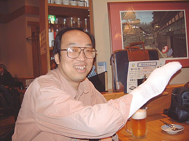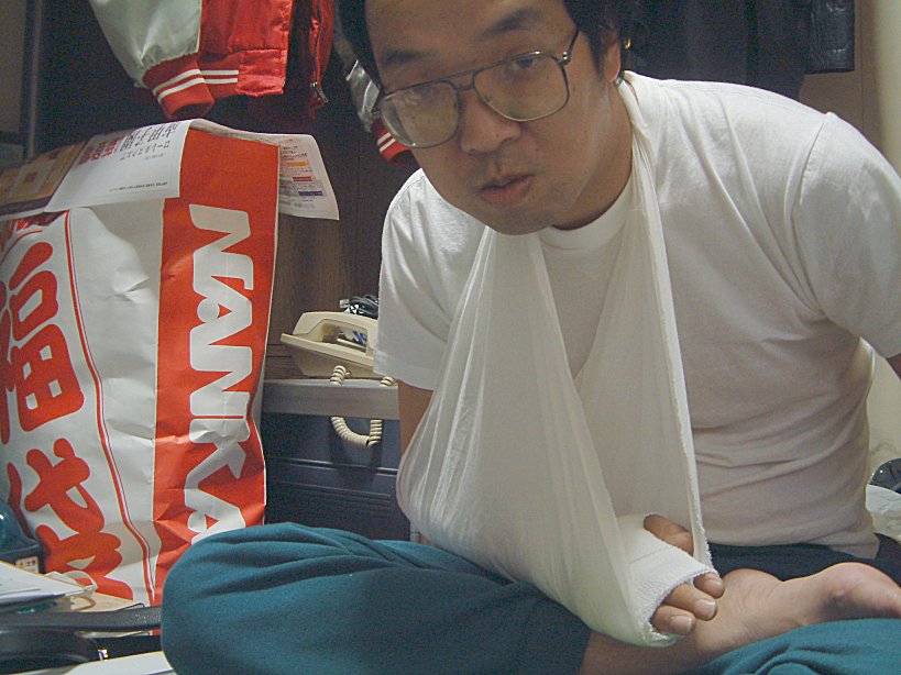 被害:よしりん→右手甲の骨折、字が書けないよ〜ん。服も