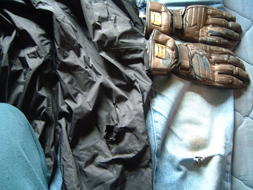 ると前輪がすべり、そのままバイクごと走行車線の方にヘッドスライディング。あぁ、いたたたた、やってもうたぁ。