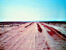酒泉からエチナへと向かう道。 ひたすらゴビを走る。ライトバンだったから、 ゆれてゆれて寝れない・・・。 助手席の周さんはひたすら寝てる、運転手さんの郭さんはひたすら運転してる。逞しい・・(笑) エチナは当時、未解放地区だったのか、検問で待っていると、村人達がわらわらと集まってきて、インドネシア人か?インド人か?と囲まれた。。 そりゃ、国籍不明に見えるわな、砂埃よけのマスク、頭はスカーフで覆って、グラサンだもん。 誰が見たって怪しいわ(笑) |