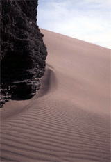 出発して激しく後悔。エチナの街からたいした距離ではな いけど、砂漠のオフロードや川床を4WDで走る。揺れるどころの話しではない。20kmの道もものすごく時間がかかった。 蜃気楼も最初は珍しかったけど、あまりにもたくさん見えたので途中からどうでもよくなった・・(笑)風紋が印象的だったので撮った1枚。 陸軍兵士のおじさんは、観光中はフラリと一人でその場を離れる。何してるのかな〜と最初は思ってたけど、 次の史跡へ出発しようと集合したら、メノウの石や遺跡に落ちてた文物を探して拾ってきてくれたのでした。 言葉は通じないし、なんかボーッとした兵隊さんやなぁ、と思ってたけど、すごくやさしい人なのね、と嬉しい発見。 |